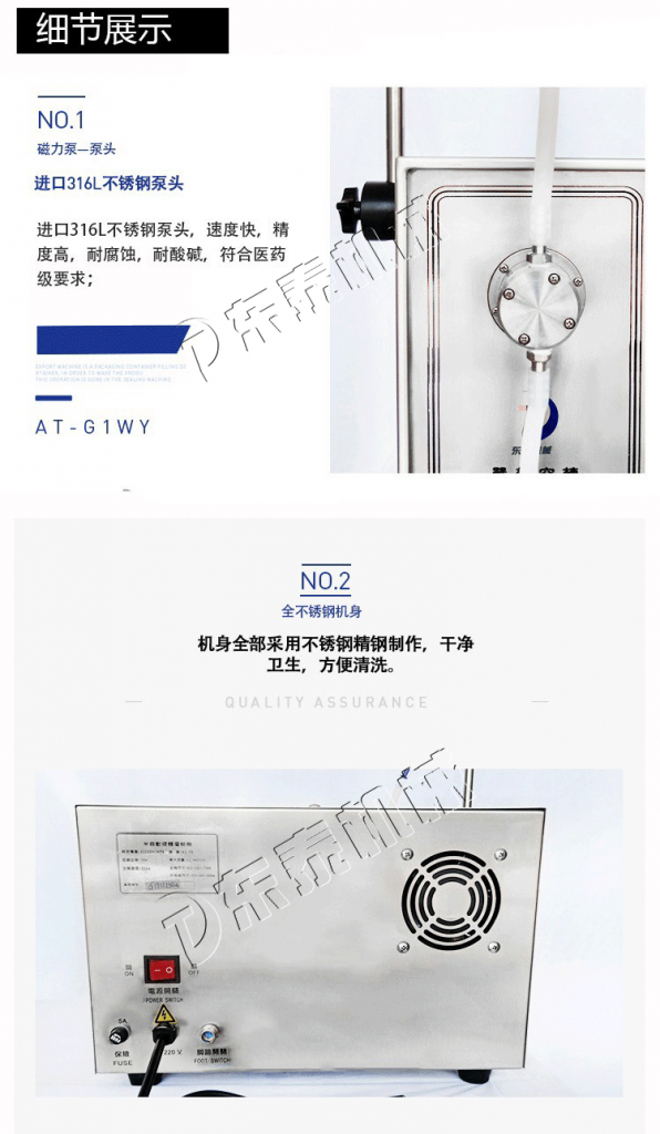 ⑦原料桶液位高低不宜相差太大,否則影響磁力泵液體灌裝機(jī)的精度;