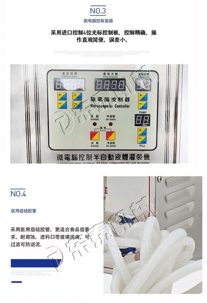 ⑤醫(yī)用小型液體灌裝機(jī)灌充頭必須垂直向下,否則會(huì)出現(xiàn)滴液現(xiàn)象;