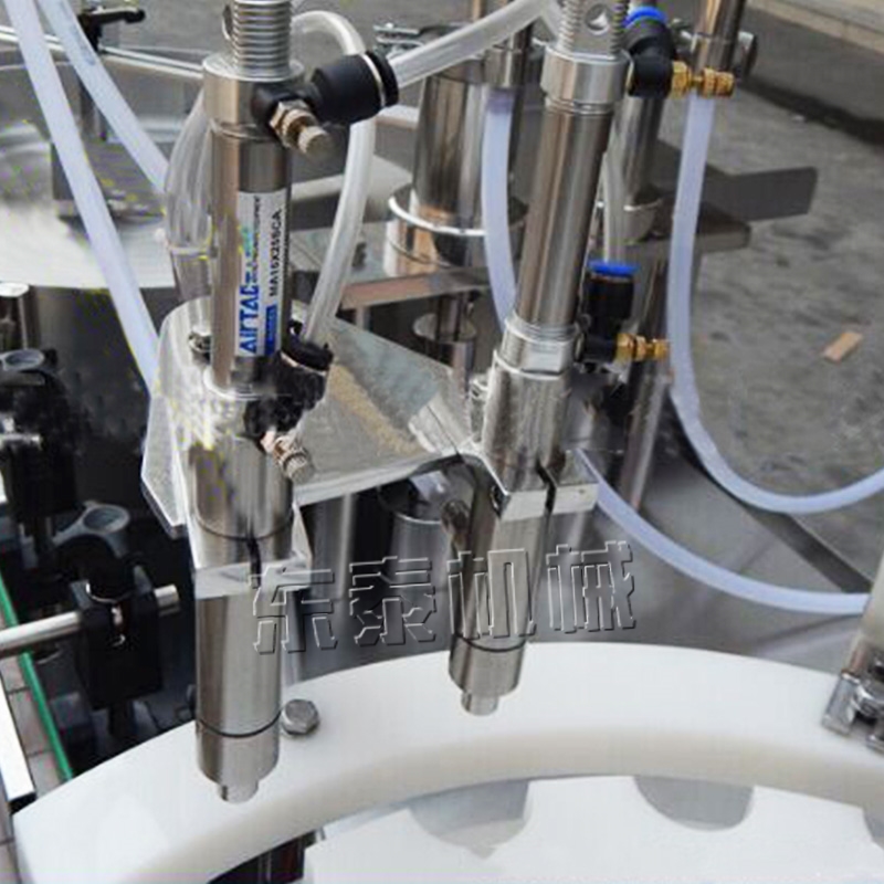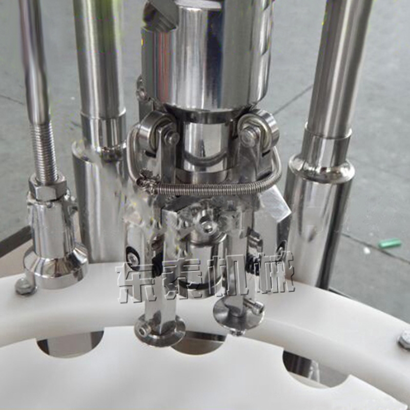 3、小瓶藥液灌裝旋蓋機(jī)灌裝系統(tǒng)具有吸氣功能,可防止液滴飛